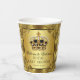 Coupes en papier baby shower Prince avec belle couronne noire et or sur un élégant arrière - plan tourbillon or. Vous pouvez ajouter le texte de votre choix à ces tasses de baby shower prince noir et or.