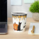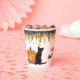 Cette amusante tasse en papier de fête d'Halloween comporte un chat noir assis à côté d'une lanterne Jack. Au sommet de la tasse sont des gouttes d'orange et de noir faux glitterie. L'image du chat et Jack o' lanterne sont répétées deux fois, avec un texte noir entre les deux qui dit "Happy Halloween". Le texte peut être facilement changé à tout ce que vous préférez. *La parties scintillant est simulée; aucune parties scintillant réelle n'est utilisée dans le produit.