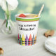 Des craies entourent cette tasse d'anniversaire avec "joyeux 1er anniversaire ______" et "un !" au-dessus d'eux qui correspondent aux autres pièces de cette collection. Modifiez facilement les barres de couleurs en haut ou ajoutez un arrière - plan si vous le souhaitez.