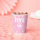 Voici un rose Retro Daisy Flower Five Est Une Vibe 5e Coupes de papier fête d'anniversaire.