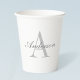 Gobelets En Papier Élégant Monogramme blanc et gris