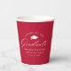 Coupes élégantes en papier de graduation avec une casquette de graduation avec l'expression "Bravo au diplômé" dans un script de calligraphie blanc sur un arrière - plan rouge. Personnalisez les tasses de papier modernes avec le nom du diplômé, le nom de l'école et l'année de fin d'études. Le dessin se répète à l'arrière. Les gobelets de fin d'études simples sont parfaits pour votre fête de fin d'études secondaires ou collégiales.