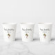 Tasses en papier de fête d'anniversaire tropicale, avec un design élégant de palmiers sur un arrière - plan blanc. Avec le lettrage typographique personnalisable, vous ajoutez vos propres informations. Un ajout festif à votre célébration inspirée de la plage.