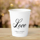 Gobelets en papier avec le mot "amour" dans une police cursive élégante. Parfait pour les fêtes de mariage, les fiançailles et les anniversaires de mariage.