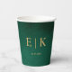 Emerald Green & Gold Monogram Wedding Paper Cups | Elegant Luxe Custom Initial Party Supplies
