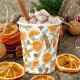 Ces tasses en papier sont décorées d'agrumes et d'épices, idéales pour des vacances divertissantes et des fêtes de Noël. La motif se compose de tranches d'orange, de bâtonnets de cannelle, d'anis et de pinèdes pour rappeler les odeurs de vacances.