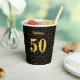 Fabuleux 50 ans et étoiles d'or sur des tasses en papier noir. Le texte peut être personnalisé.