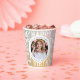 Tasse en papier moderne contemporaine pour la fête d'anniversaire photo. Avec espace pour la photo et l'information. Moderne rose girly, pur[ple, turquoise, bleu, vert, orange, jaune pastel arc-en-ciel et blanc peuvent être customisés selon votre style.