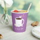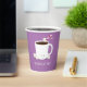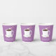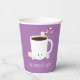 Coupes de papier de Noël pour une fête de chocolat chaud. Ces tasses sont équipées d'une tasse souriante de cacao chaud avec un sucre de canne et de plusieurs guimauves joyeux sur un arrière - plan lavande violet. Tous les mots peuvent être customisés. Fête de Noël Chocolat chaud cacao chaud tasses de papier Sweetsham nourriture Art | ©Melissa Patton - Artiste/Illustrateur