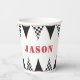 Allumez le grill et faites une fête de la course avec ces tasses en papier festif avec des drapeaux à damiers noirs et blancs.
