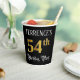 Ce design élégant et élégant de tasse de papier d'anniversaire comporte un nom personnalisable et le message "54th Birthday Party". Le grand numéro "54th" a un motif de coloriage d'inspiration fausse/imitation or, les mots "Birthday Party" sont en texte orné de script, et l'arrière - plan est coloré noir par défaut (bien qu'il puisse être customisé). Des tasses de papier ornées et opulentes comme celle-ci pourraient être utiles à une fête d’anniversaire ou à une célébration pour honorer le 54e anniversaire de quelqu’un. [~Z0000567]