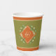 Ajoutez une touche spéciale à votre table d'habitation cet automne de saison de vacances avec cette tasse de papier monogrammed orange et vert chaleureux. La Coupe a un arrière - plan orange et vert avec votre nom de famille et l'initiale dans le centre. Autour de votre texte personnalisé est une jolie couronne verte. Cette tasse d'automne est un magnifique décor de fête d'Halloween et de Thanksgiving, et c'est aussi un cadeau attentionné et personnalisé !