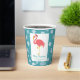 Ajoutez votre nom de famille à ces gobelets festifs avec un flamant tropical au chapeau de Père Noël. Le design est composé d'un arrière - plan bleu et blanc flocon de neige. Personnalisez le nom sur ces tasses de papier ou customisez le texte pour convenir à votre partie.