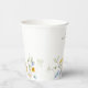 Élégantes tasses en papier fleur sauvage avec fleurs sauvages d'été délicats en bleu, jaune, orange et violet.