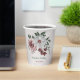 Magnifique tasse en papier botanique représentant des fleurs roses, blanches et cannelle/ chianti romantiques avec des feuilles vertes .
