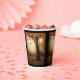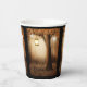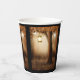 Tasses en papier avec une illustration fantaisiste fantaisiste dans des couleurs brun et jaune riches. Une forêt mystique magique avec un grand arbre tenant une lanterne à l'ancienne. Des lumières des fées dansent tout autour. Un design merveilleux et enchanteur.