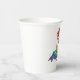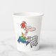 Un commerçant frénétique se promène avec un panier. Cette conception semble vraiment efficace sur ces tasses de papier