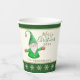 Créez des tasses de papier vert de Noël personnalisées uniques pour votre fête de famille avec un design mignon qui comporte un joyeux dicton de Noël, illustration gnome et modèles de texte pour l'année et nom de famille.