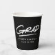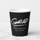 Coupes de papier moderne avec "Grad" en blanc, écriture manuscrite avec pointillé souligné sur un arrière - plan noir (ou couleur de votre choix). Personnalisez les tasses de papier noir et blanc en ajoutant le nom et l'année de graduation du diplômé. Le dessin se répète à l'arrière. Les tasses personnalisées sont parfaites pour les fêtes de fin d'études secondaires et collégiales !