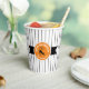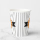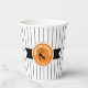 Cette tasse en papier présente un chat d'Halloween noir sur un étiquette rond orange et noir avec le texte 'Happy Halloween' en blanc. Personnalisez avec votre nom ou autre texte. Arrière - plan est un motif étroit rayé noir et blanc. Recherchez ID686 pour voir d'autres produits avec cette conception.