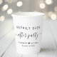 Des tasses en papier chic pour votre réception de mariage et d'autres fêtes après mariage avec "Happily Ever After Party" dans une typographie moderne simple et un script swash élégant, vos prénoms unis par un coeur et votre date de réception.