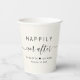 Chic tasses en papier crème pour votre réception de mariage, fiançailles, douches en couple et autres célébrations mariages qui présentent "Happily Ever After" dans une typographie moderne simple et un script élégant avec des swashes, vos prénoms unis par un coeur et votre date mariage.