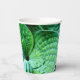 Des feuilles hosta verdoyants qui scintillent avec des gouttes de rosée font pour une tasse de papier étonnante. Ils seraient parfaits pour une fête de jardin, un mariage extérieur ou une fête.
