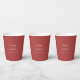 Simple merisier + tasses de papier de Noël lumineuses. Ces tasses en papier de noël ont un arrière - plan rouge profond avec un texte de machine à écrire blanc. Tout le texte peut être customisé et remplacé par n'importe quel texte de votre choix.
