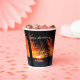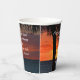 Joyeux Anniversaire Hommes Sunset Tropical Trees Paper Cups a un brillant coucher de soleil orange sur l'océan serein. Remplacez l'information par la vôtre et donnez à cette personne spéciale dans votre vie. Photo de Denise Bennerson, photographe