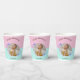 Joyeuse tasse de papier d'anniversaire célébrant le premier anniversaire de la Star de tir. La tasse en papier présente une photo circulaire de votre enfant entourée d'étoiles tournantes bleues et lunatiques sur un arrière - plan rose et vert. Les gobelets Joyeux Anniversaire sont neutres du genre et sont ornés de calligraphie de script. Il s'agit d'une tasse minimaliste et moderne et les étoiles apportent une touche simple mais magique. Customisez avec vos propres détails.