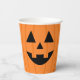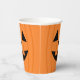 Cette mignonne tasse de fête en papier Halloween présente un visage de citrouille jack-o-lanterne souriant amical, dans les couleurs orange et noir.