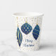 Des ornements d'arbres de Noël bleu et or sur des points bleus et or et les mots Joyeux Noël (ou n'importe quel texte), ces tasses en papier sont parfaits pour toutes les occasions de Noël de vacances. CORRESPONDRE des articles dans notre magasin.