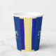 Joyeuses tasses de papier de jour férié avec des couleurs bleues et du texte or. Super tasses en papier pour ceux qui veulent des provisions pour fêtes pour célébrer la nouvelle année. Belles couleurs bleu et or. Texte personnalisé sur le devant. Utilisez le modèle pour créer vos propres coupes de papier de vacances Joyeux Nouvel An bleu et or.