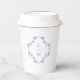Chic et élégance jeune. Cette tasse de papier mariage plat bleu et blanc poussiéreux dégage une tonalité fraîche, moderne et jeune. Le design se compose d'un charmant monogramme à couple floral élégant, contre un arrière - plan blanc immaculé. Correspond parfaitement à tous les autres éléments de la collection.