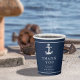 Les pièces de cette élégante suite de mariage présentent un style nautique classique et un style épuré et minimaliste. Des vagues stylistiques dans les teintes allant de l'aqua au bleu marine et une illustration d'ancrage et de corde apportent des accents uniques. Sur cette tasse de papier de coordination, la petite ancre blanche sur un arrière - plan bleu marine est simple mais attrayante. Ajoutez votre message "Merci", vos noms et votre date de mariage à l'aide du modèle fourni. Idéal pour les mariages de club nautique, de bateau, de plage ou d'été. Recherchez ID836 pour voir cette suite complète et d'autres avec des accents d'éléments marins alternatifs.