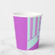 Modern Pastel Turquoise Pink Stripes Paper Cup est une fête parfaite pour l'anniversaire des filles ou toute occasion. Les couleurs pastel douces turquoise et rose créent une ambiance passionnante au design. Le dessus est en motif à rayures verticales, au milieu est la bande turquoise pastel qui souligne le nom de célébrant tandis qu'au coin droit sont les détails de l'anniversaire sur un arrière - plan rose foncé.