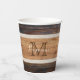 Gobelets En Papier Monogramme rayé de ton bois rustique