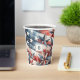 Super tasses de papier monogramme. L'avant et l'arrière de ces gobelets spéciaux sont festifs, rouge, blanc et bleu (représentation décorative de certains symboles américains). Utilisez le modèle pour customiser. Ajoutez le monogramme ou l'original désiré.