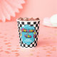 Neon 90's rétro Thirteen est une vibe 13e anniversaire tasses en papier avec des coeurs, des marguerites, des boules disco et des arrière - plans de dames.