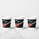 Serve up drinks at your next gathering with these festive paper cups showcasing the vibrant glowing electric guitar graphic. The unique retro lighting and pink and blue color scheme add a fun, energetic stage performance aesthetic to birthday parties, band celebrations, or music themed events. These disposable cups are a perfect accessory for complementing your eighties revival party decor and are a great way to celebrate stringed instrument modern artistry.