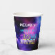Un néon tendance brille dans les tasses de papier Sweet sixteen coloré bleu violet foncé néo-bleu rose vif.