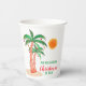 Fêtons Noël en juillet avec un barbecue ou une fête ! Ces tasses en papier coloré sont décorées de palmiers et de lampes à cordes sur un arrière - plan d'aquarelle. Facile à personnaliser. En créant notre oeuvre, vous ne trouverez pas cette image exacte d'autres créateurs. Aquarelle originale © Michele Davies.