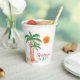 Fêtons Noël en juillet avec un barbecue ou une fête ! Ces tasses en papier coloré sont décorées de palmiers aquarelles et de lampes à cordes. En créant notre oeuvre, vous ne trouverez pas cette image exacte d'autres créateurs. Aquarelle originale © Michele Davies.