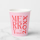 Gobelets En Papier Noël Joyeux et rose rouge vif 2025