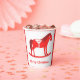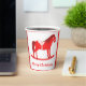 Ce magnifique ensemble de tasses en papier de Noël présente une image art numérique d'un mignon cheval à bascule de style scandinave. Le cheval est rouge avec une crinière rouge foncé, la queue et les sabots. Le cheval sympathique sourit. Il a une selle blanche et des rois avec de jolis motifs de style Scandi rouge sur la selle, y compris le soleil, la lune et les étoiles, les coeurs et les fleurs. La base du cheval rocking est rouge et est couverte de feuilles blancs. Le design a été inspiré par le cheval suédois Dala. Il y a du texte personnalisé pour que vous puissiez personnaliser cette conception avec un message.