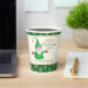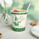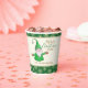 Créez des tasses de papier de Noël personnalisées pour votre fête de famille avec un design unique qui comprend un joyeux dicton de Noël, un joli gnome en vêtements verts et des modèles de texte pour customiser avec l'année et votre nom de famille.