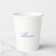 Gobelets En Papier Nom Calligraphie Script Simple Blanc Bleu
