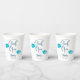 Tasse en papier baby shower rêvée et élégante avec illustration de nuages bleu turquoise. Le texte dit "nous sommes sur le nuage 9."
