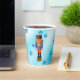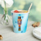 Casse-noix en bois allemand traditionnel représentant un officier de l'armée avec un uniforme bleu et orange. Le casse-noix est superposé sur une image arrière - plan bleue avec des flocons de neige. Ajoutez votre propre texte à l'envers.