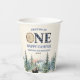 C'est un Blue ONE Happy Camper Woodland Forest Bear 1st Birthday Party Paper Cups! woodland forest bear animal green buffalo print hiver novembre Décembre froid arbres bois bois jack grizzly ours bleu brun
